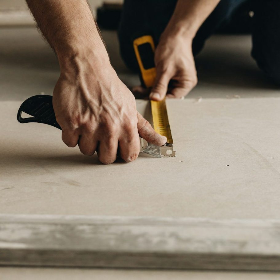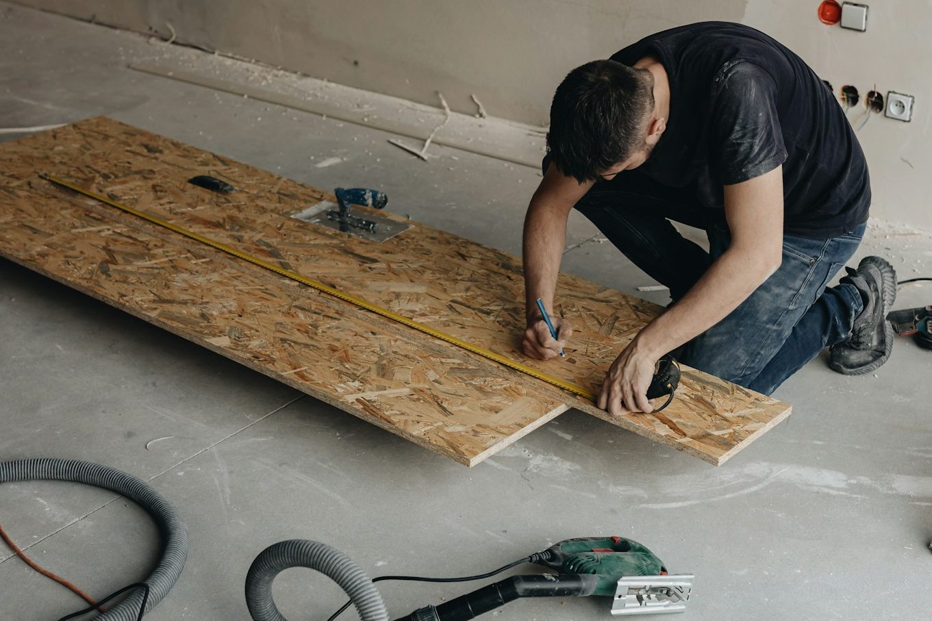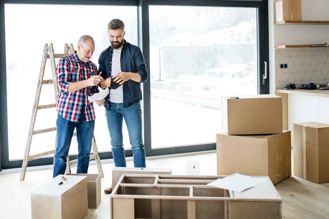 Küchenschränke aufbauen: Die Montage von Schränken, Regalen und Arbeitsplatten einer Fertigküche nach Anleitung.